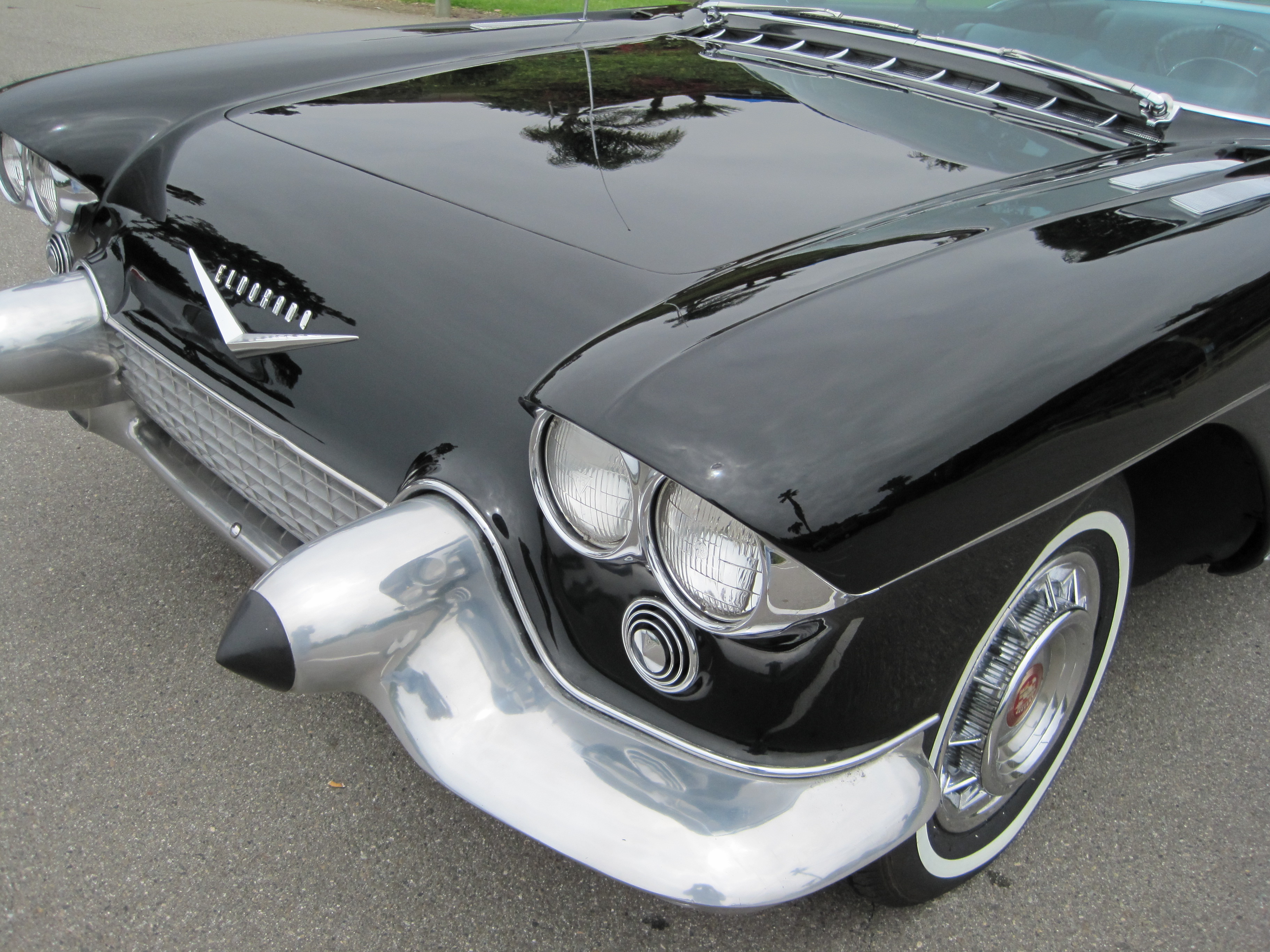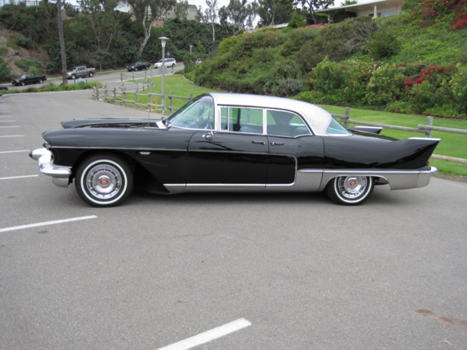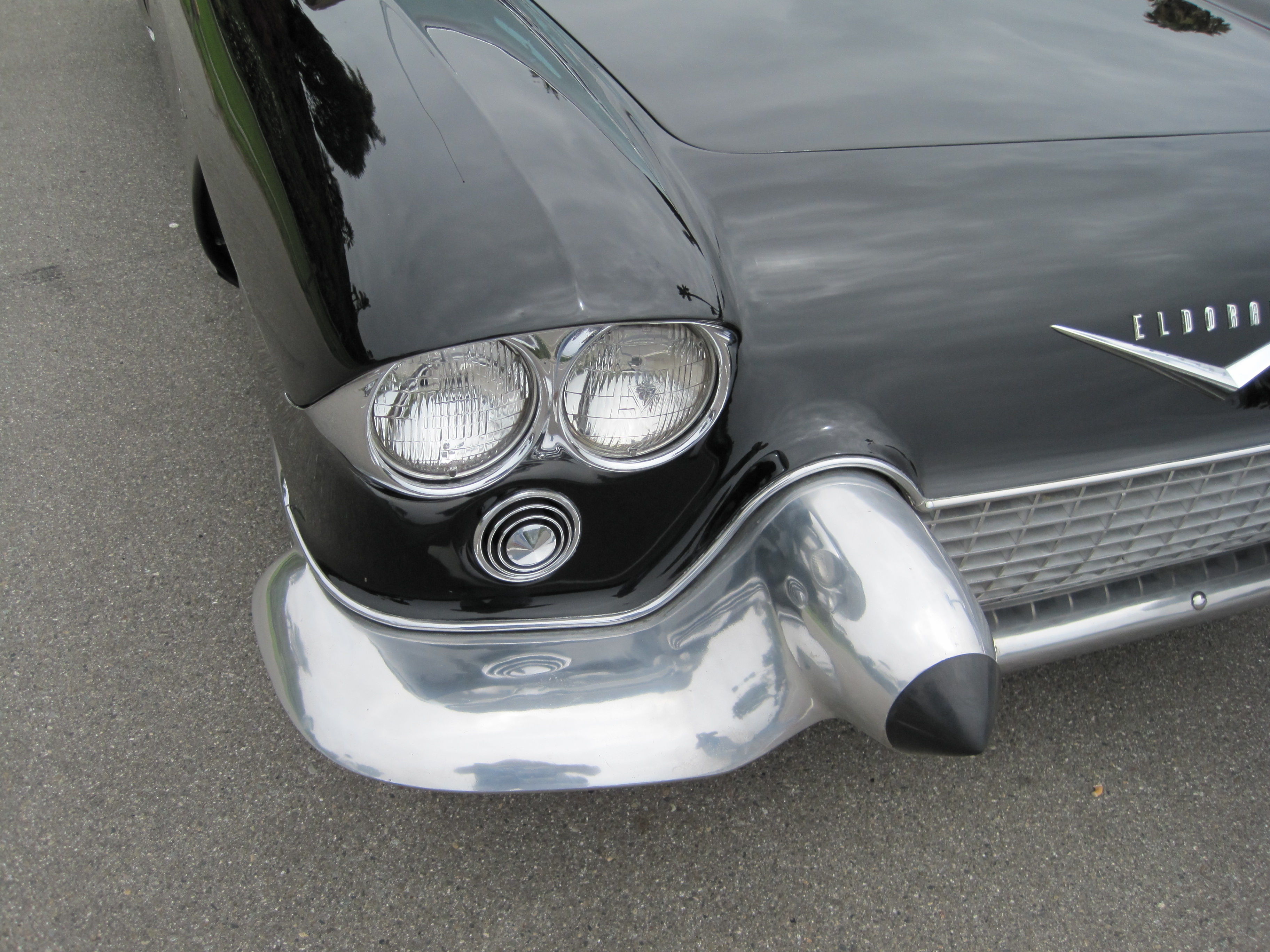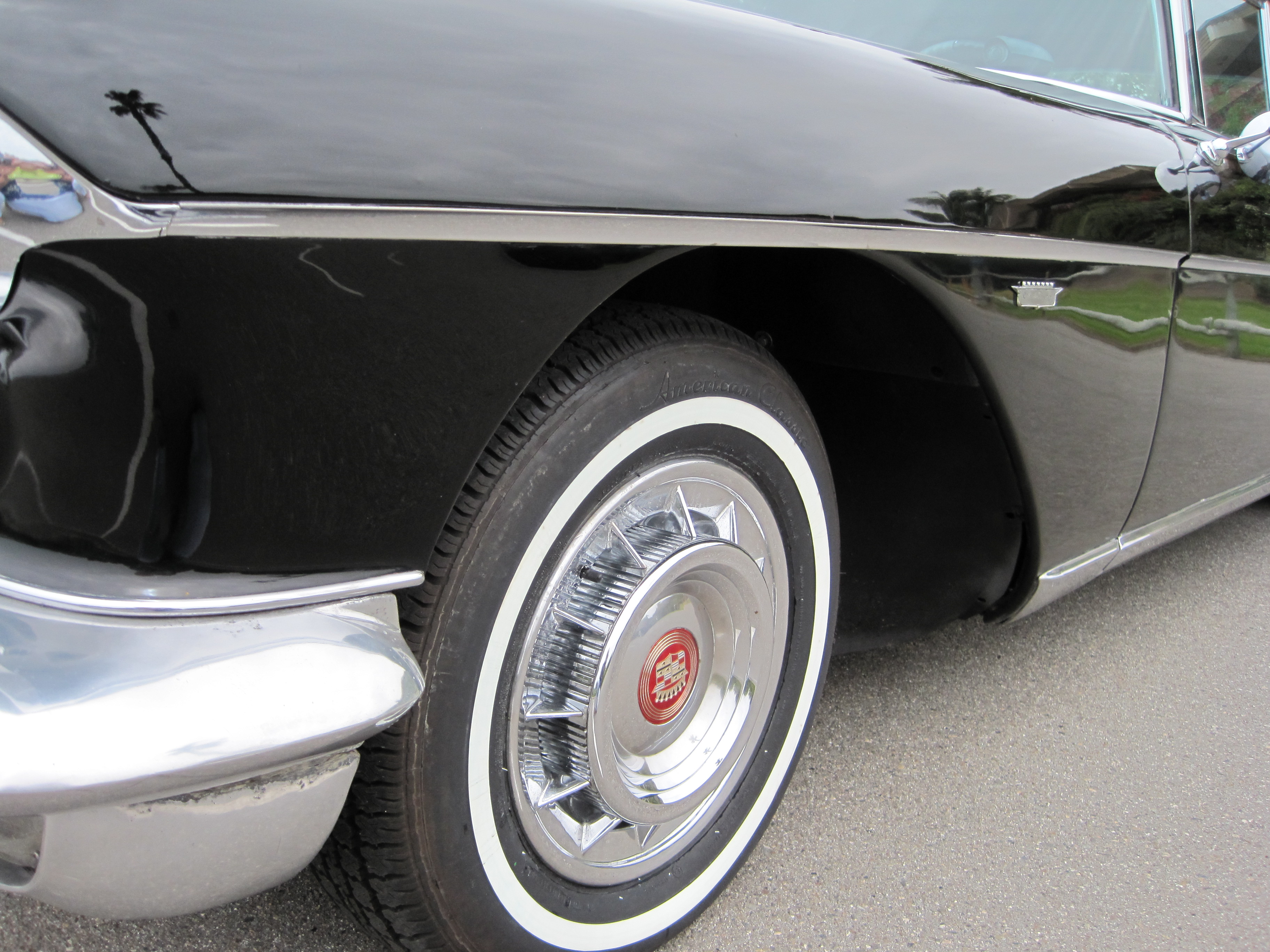 The interior of this car is simply spectacular! You just can't believe that it is completely original. I removed the front seat bottom and had it disassembled so that the stitching could be refreshed. Original nylon "Karakul" carpet is excellent however I did need to sew in a larger heel pad because of wear adjacent to original. Dash pad shows normal foam breakdown and heat shrinkage (Just Dashes can replace). All windows and vent windows work well. Central locking, gear shifter lockout and rear door disable all works. Polarized sun visors are spectacular and perfect! Trunk open/close control works fine. Interior ceiling light bezels are uncracked and not heat distressed. Emergency brake works fine as does toe operated release button. Horn is inoperative but proper Eldorado Brougham horns are all there (4 of them!). Trunk material was "shot" and reproduction carpet for the 1958 year Brougham is not available. A beautiful, professionally done reupholster of the trunk was done in a color and weave very similar to the 1958 material (1957 material is made but not correct). Jack items and wood wheel block are intact. Trunk open/close works great as does the trunk light.