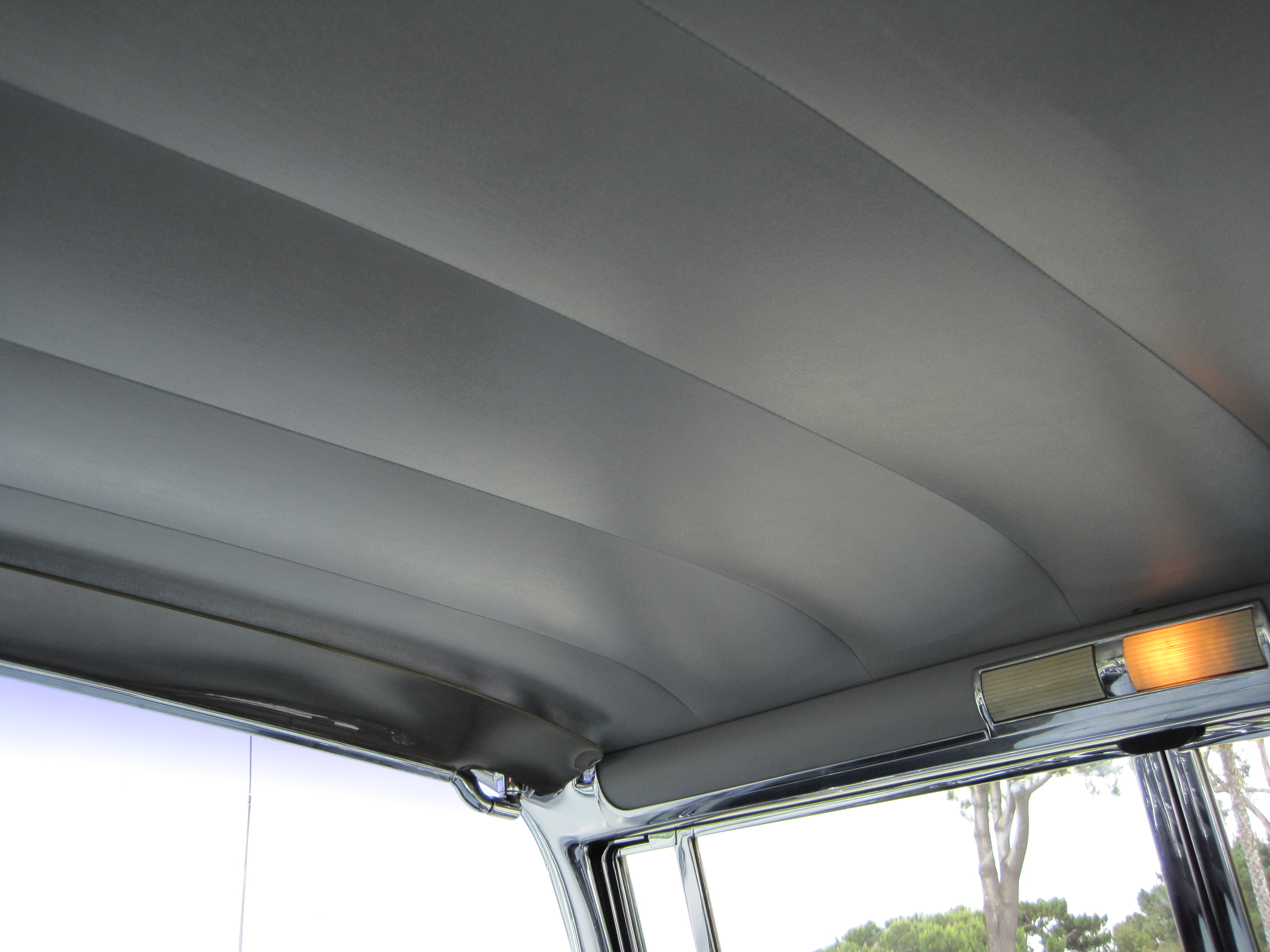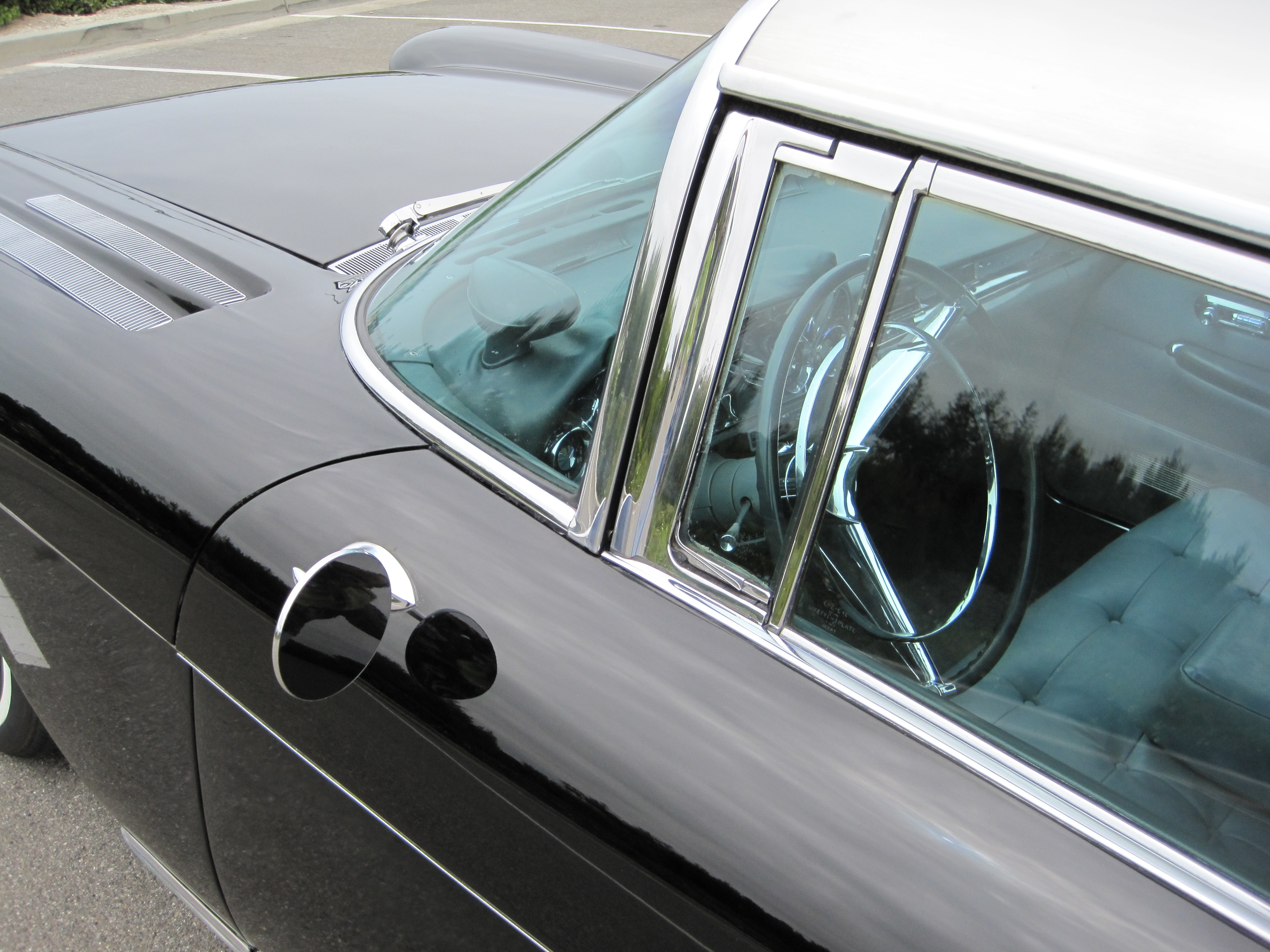 Exterior of car has been repainted and shows very well. There are two thin spots on the right/rear quarter and sever small dings. These items can be easily touched up with a light respray and sand/buff. All chrome and stainless is in excellent condition. Cast aluminum bumpers shine well but could use a polishing for show. All window glass is excellent. Windshield has some areas of delamination so typical of these cars but in no way is too noticeable. Stainless steel roof excellent with no dents and the original sanding "grain" is essentailly perfect. All exterior rubber is pliable and uncracked. All plastic lenses are uncracked and shiny except the front fog lamp lenses. They are clear bug have minor "crazing". A prior owner routed exhaust below bumpers and added block-off plates to bumper outlets. Right-rear door handle does not open door., however all doors shut firm and well with no "loose parts" sound within the doors.